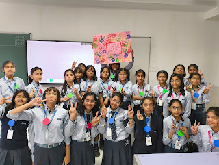 As part of an engaging and creative activity, students of Classes III to V participated in a vibrant handprint art activity to convey their best wishes to their departing friends and teachers. Using a mix of bright colours, students joyfully imprinted their hands on a large sheet, creating a stunning, colourful display symbolizing unity, friendship, and good wishes.